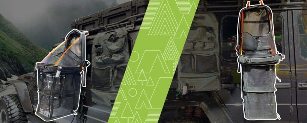 An innovative, high-quality storage solution that attaches seamlessly to your Roof Top Tent (RTT) or awning via either sail track keder DUO diameters or webbing/velcro loops around your horizontal pole.