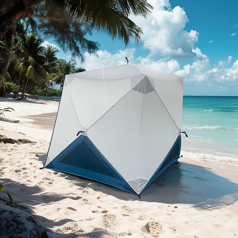 Whether you’re lounging under blue skies or seeking refuge from the breeze, our beach shelter ensures comfort in every grain of sand. Its unique design offers a spacious interior, enhancing your beachfront experience.