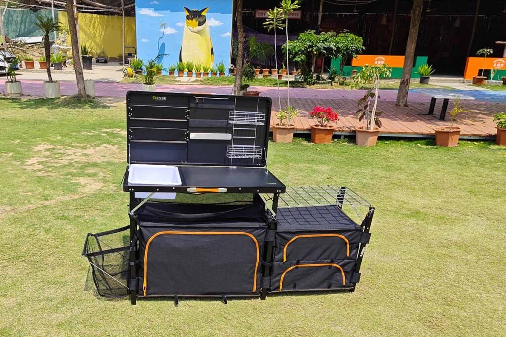 The storage bag under the table provides ample space for your ingredients and kitchen tools.